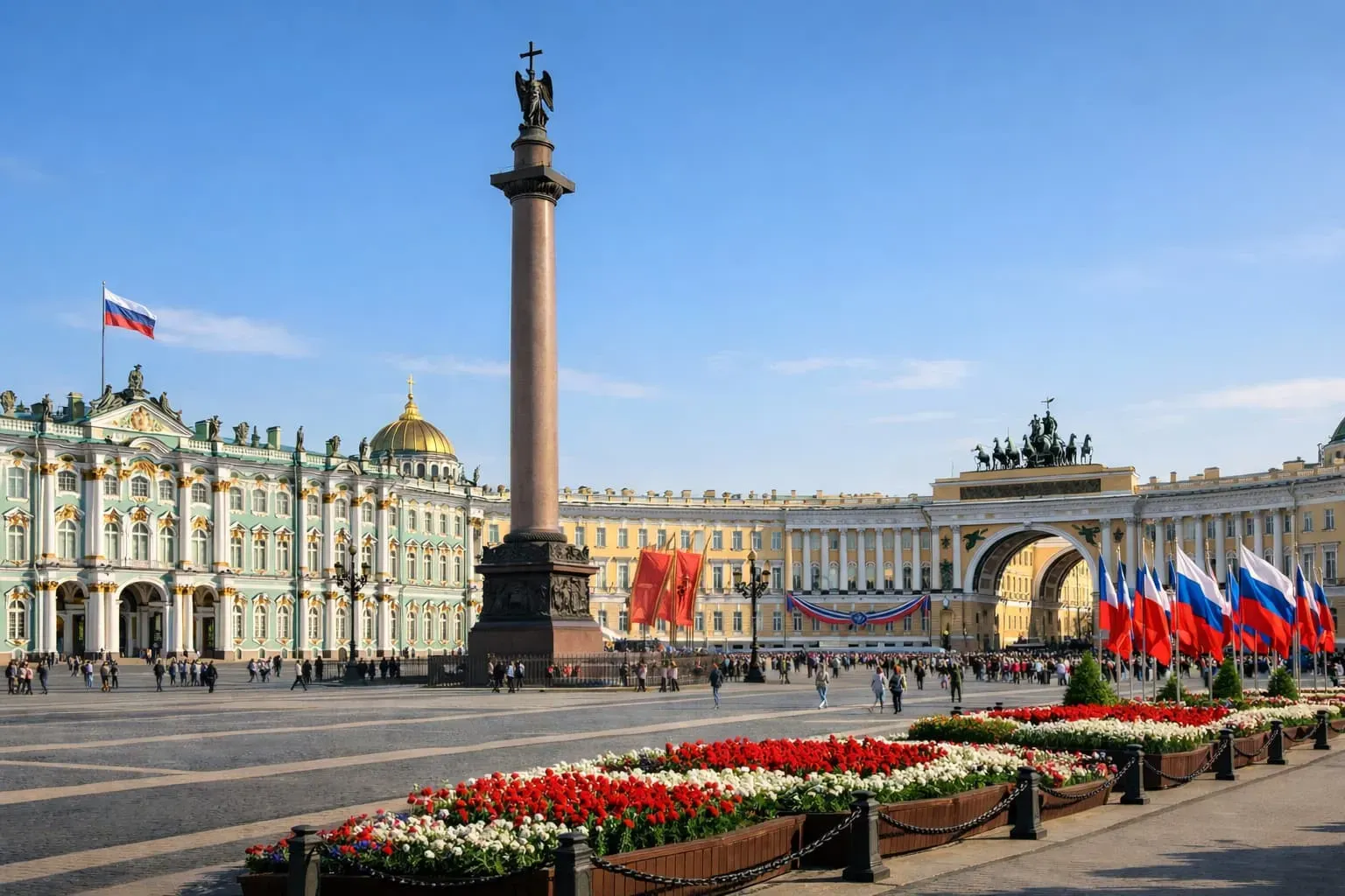 Центром празднования 9 Мая в Санкт-Петербурге по традиции станет Дворцовая площадь. Военный парад обычно начинается в 10:00 и остается одним из главных событий Дня Победы в городе. В торжественном прохождении участвуют военнослужащие Ленинградского военного округа, подразделения Росгвардии, МВД и МЧС, а также курсанты, кадеты, суворовцы и нахимовцы.