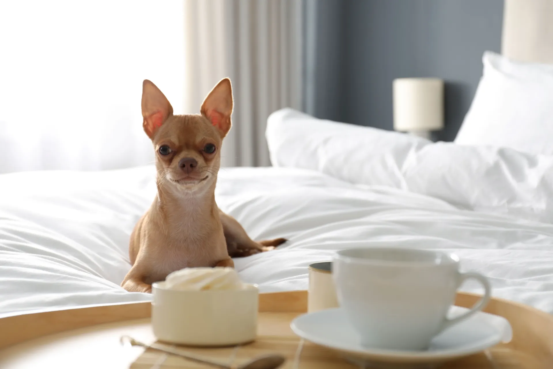 При проживании по специальному pet-friendly тарифу номер уже подготовлен для комфортного размещения собаки: в нём есть брендированные миски для воды и корма, коврик под миски, уютная лежанка и полотенце для лап, а клетка предоставляется по запросу. Это особенно удобно в поездках, когда не хочется брать с собой громоздкие вещи.