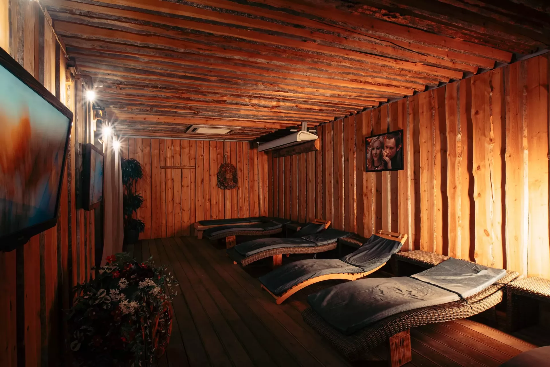 Аквазона — сердце комплекса, — чистый бассейн (длиной 16м), галерея парных: сауна, русская парная, хаммам и ледяная купель. Расслабьтесь в гидромассажном джакузи и насладитесь запахом свежего сеновала, отдохните в соляной пещере.