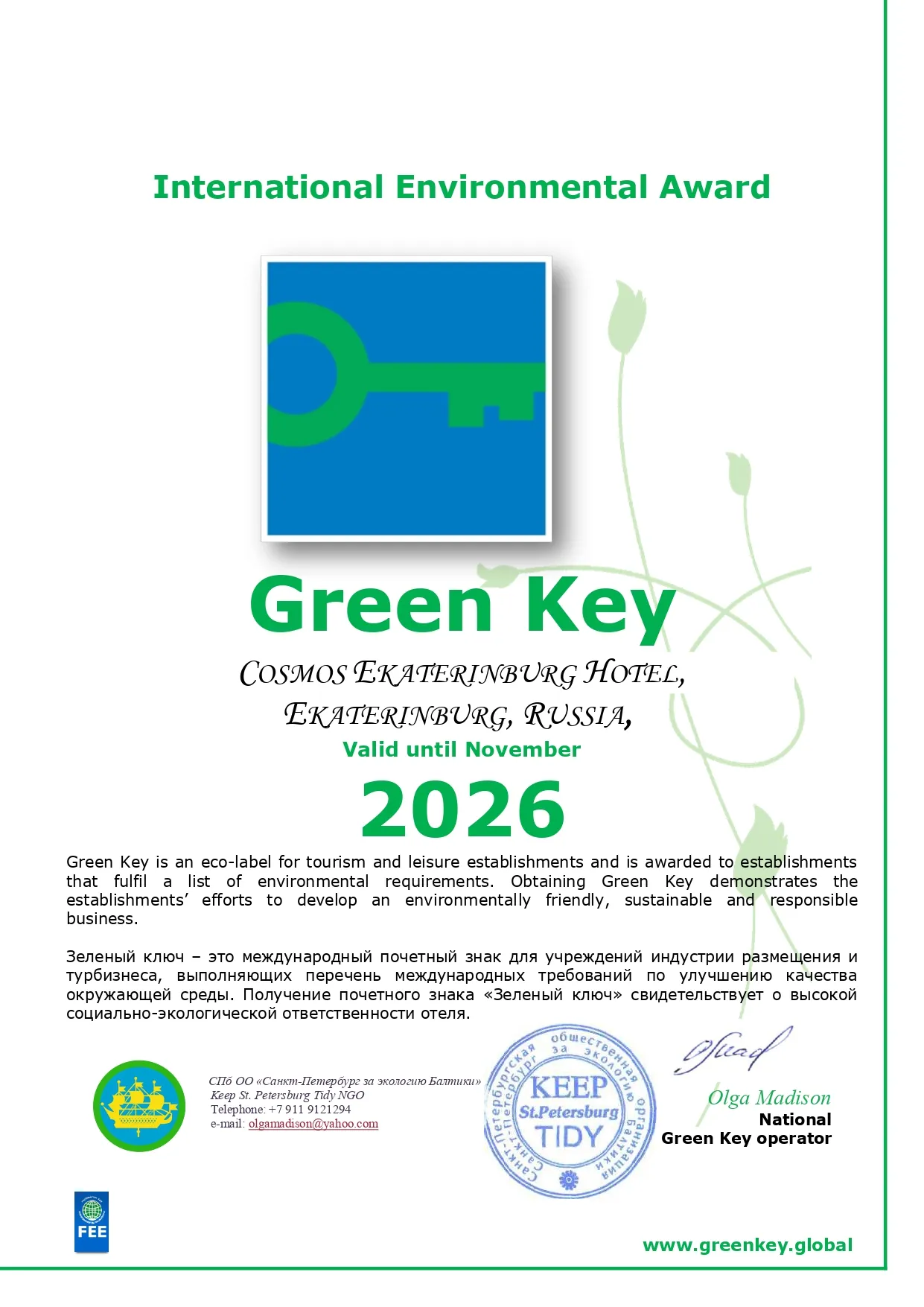 Отель расположен в самом центре деловой и культурной столицы Урала. В пешей доступности находятся знаковые культурные и исторические объекты: Екатеринбургский театр оперы и балета, Театр кукол, Храм-на-Крови, усадьба Расторгуевых-Харитоновых, площадь 1905 года и любимая горожанами набережная большого городского пруда. Рядом с отелем также находятся торговые и бизнес-центры, парки и площади, кафе и рестораны.