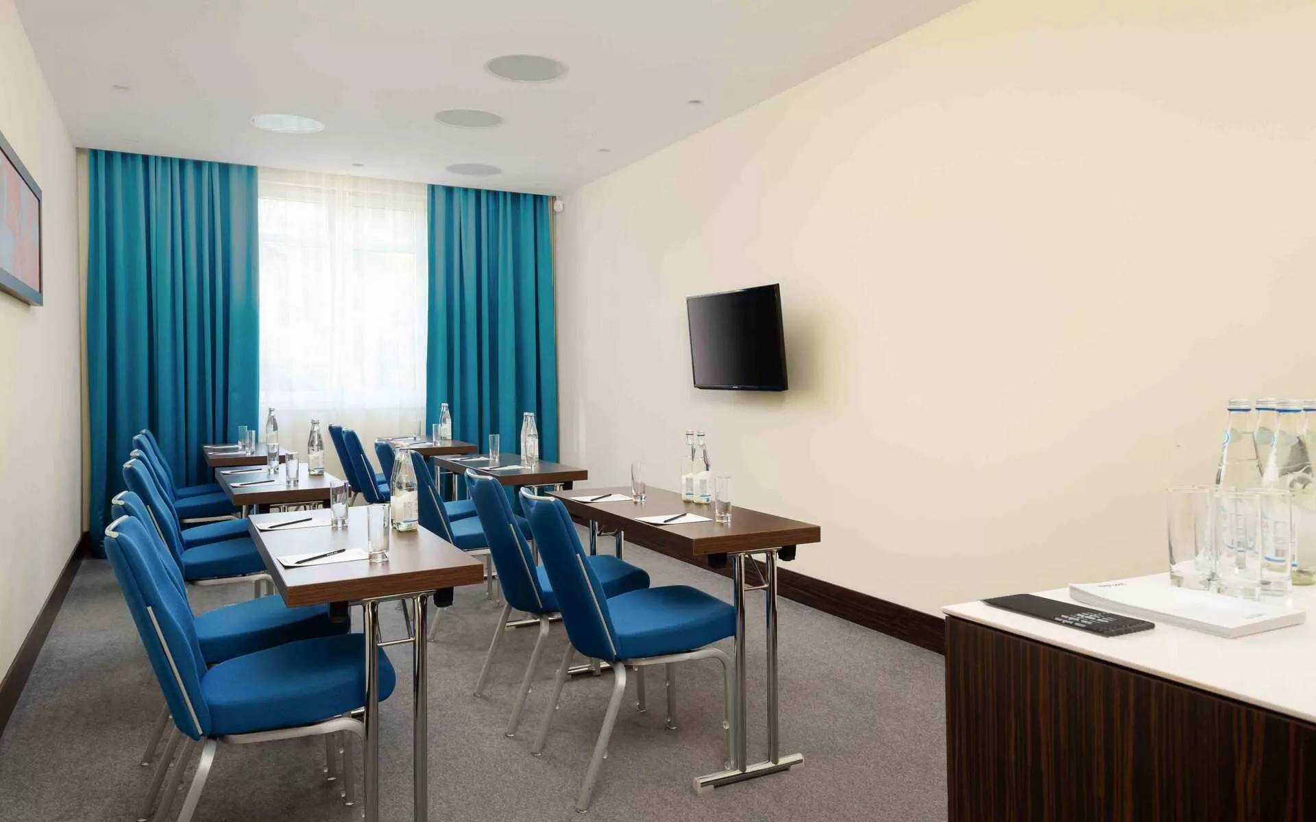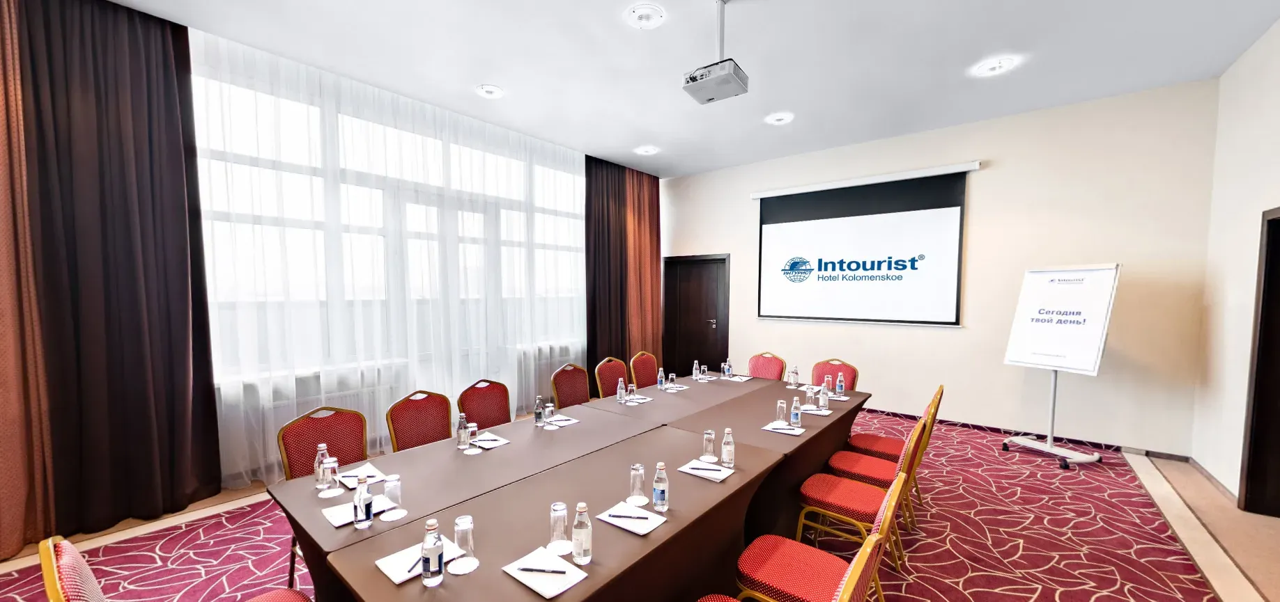 Уютный конференц-зал средних размеров идеально подходит для проведения небольших мероприятий и встреч