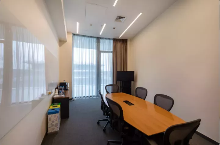 Две аудитории со столом для групповой работы и переговоров в корпоративном центре
