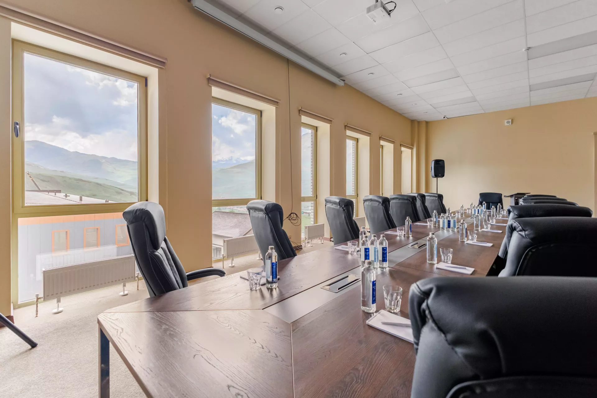 Отель Cosmos Vladikavkaz La Vallée 4* предлагает просторный конференц-зал с панорамными окнами и потрясающим видом на гору Тбаухох.