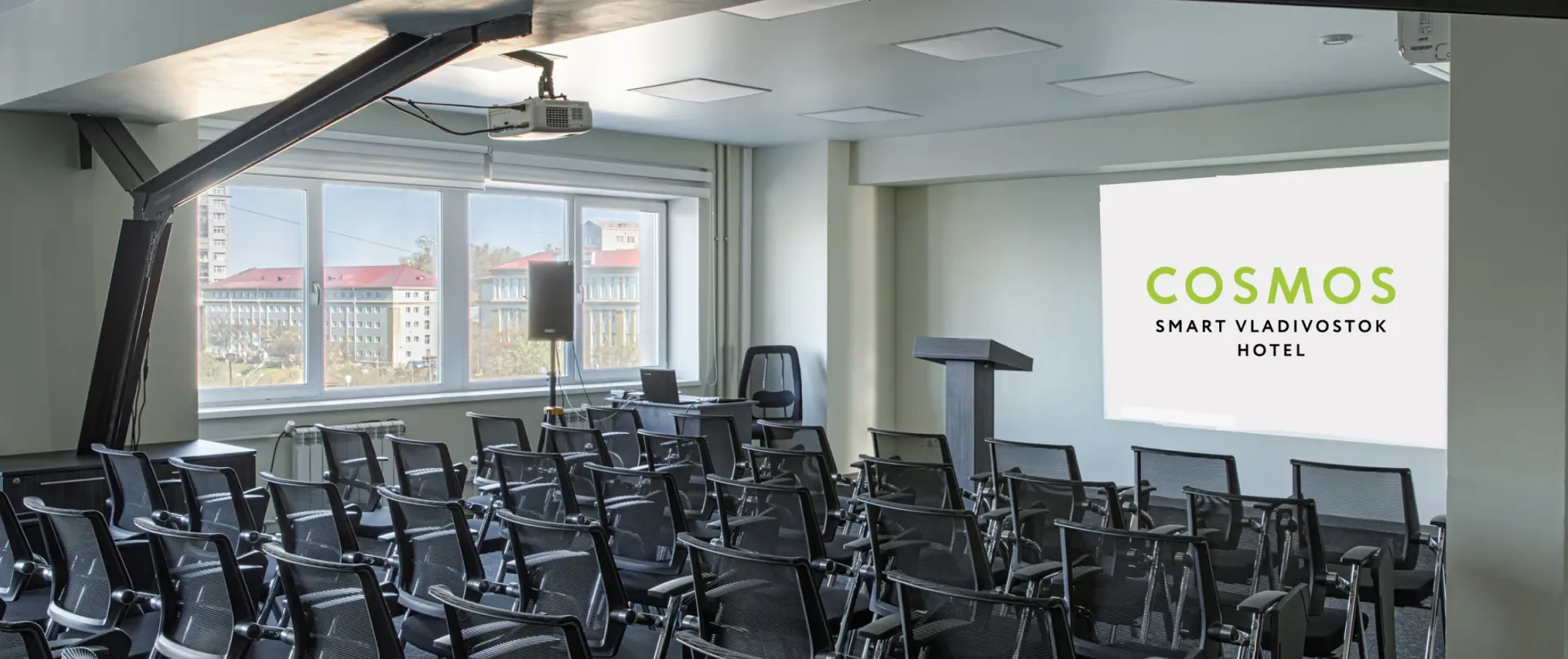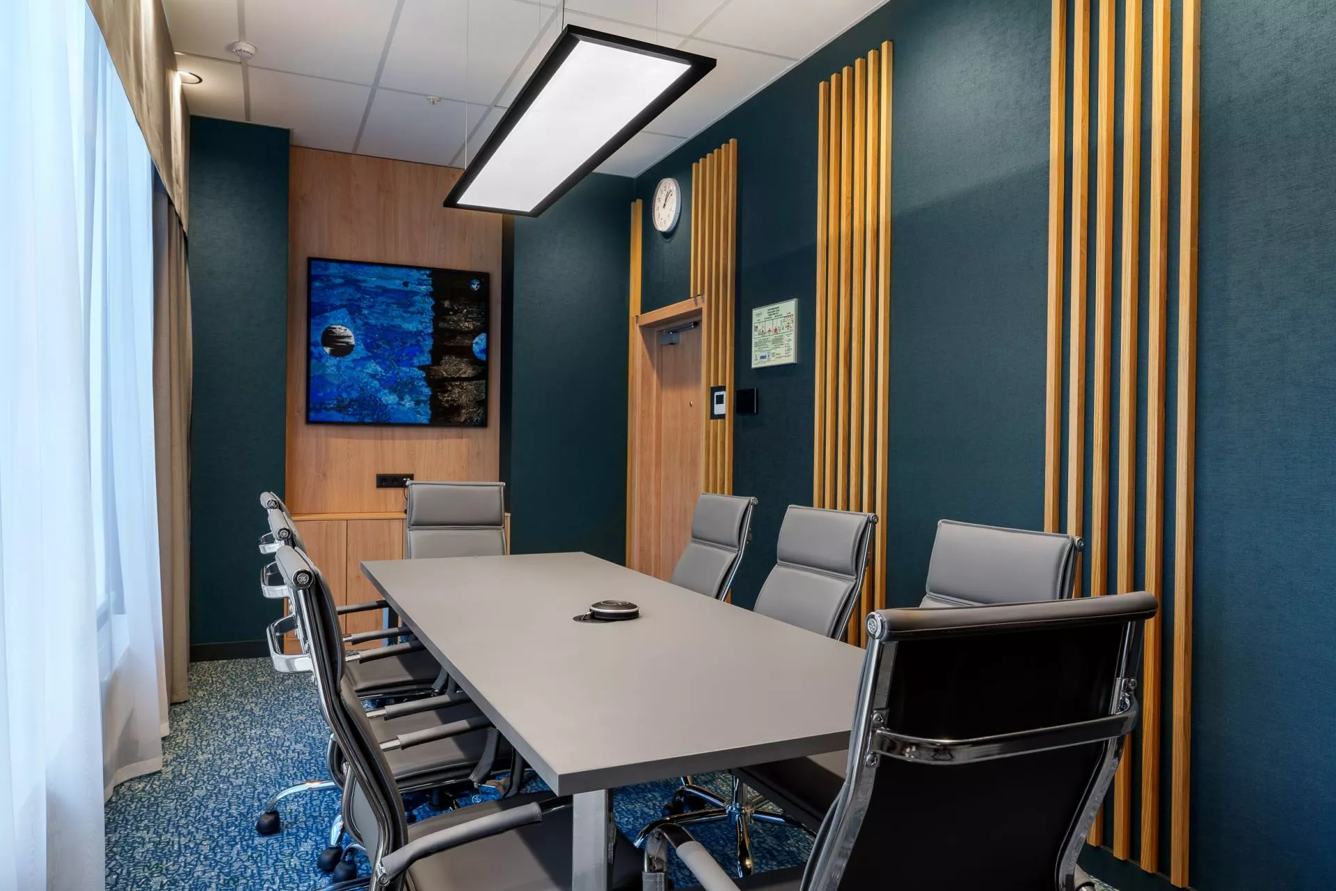 Уютный конференц-зал средних размеров идеально подходит для проведения небольших мероприятий и встреч