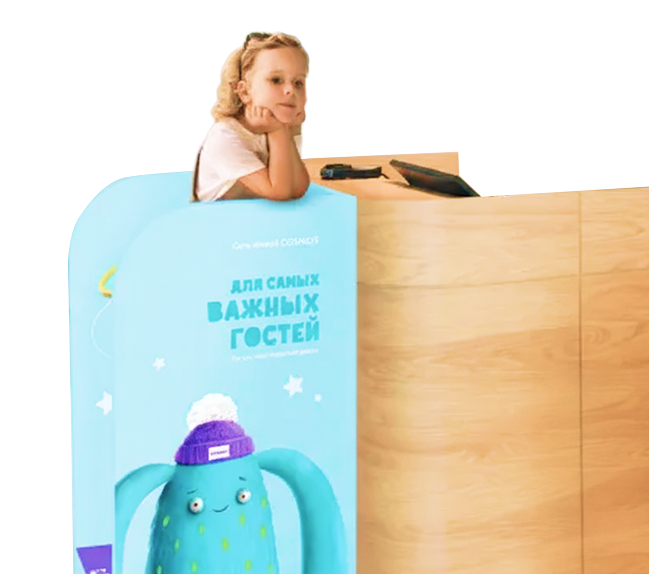 Приветственный стенд Нэппи и детское меню с раскрасками