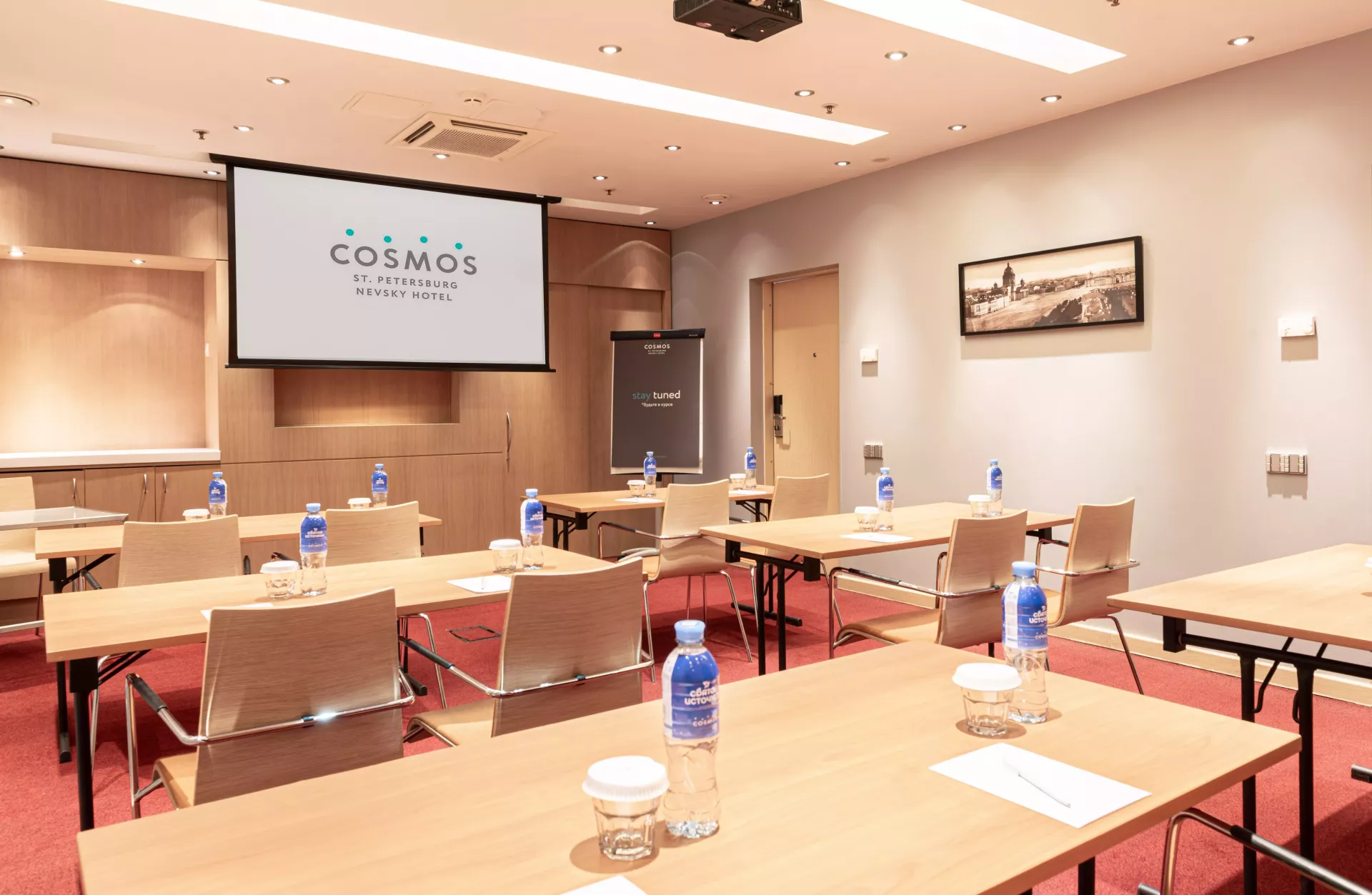 В отелях сети Cosmos в Санкт-Петербурге вы найдёте идеальные условия для проведения деловых мероприятий любого масштаба — от рабочих совещаний и презентаций до крупных конференций и корпоративных тренингов.